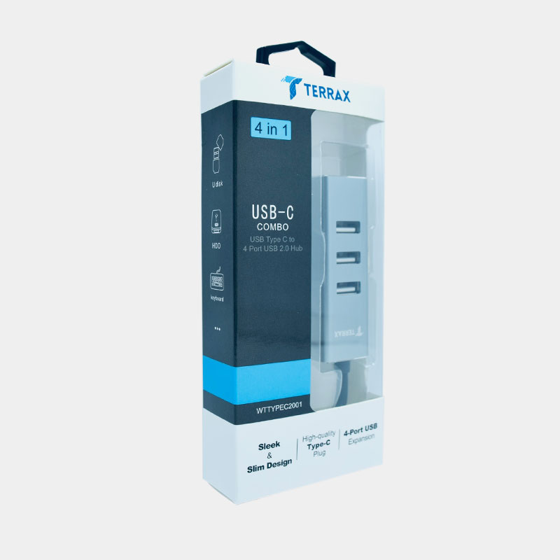 Adaptador Multipuerto TERRAX TX-HUB30CSL con conector USB tipo C a 4 USB 3.0. Conecta todos tus dispositivos o memorias USB a un solo puerto en tu PC o Laptop.