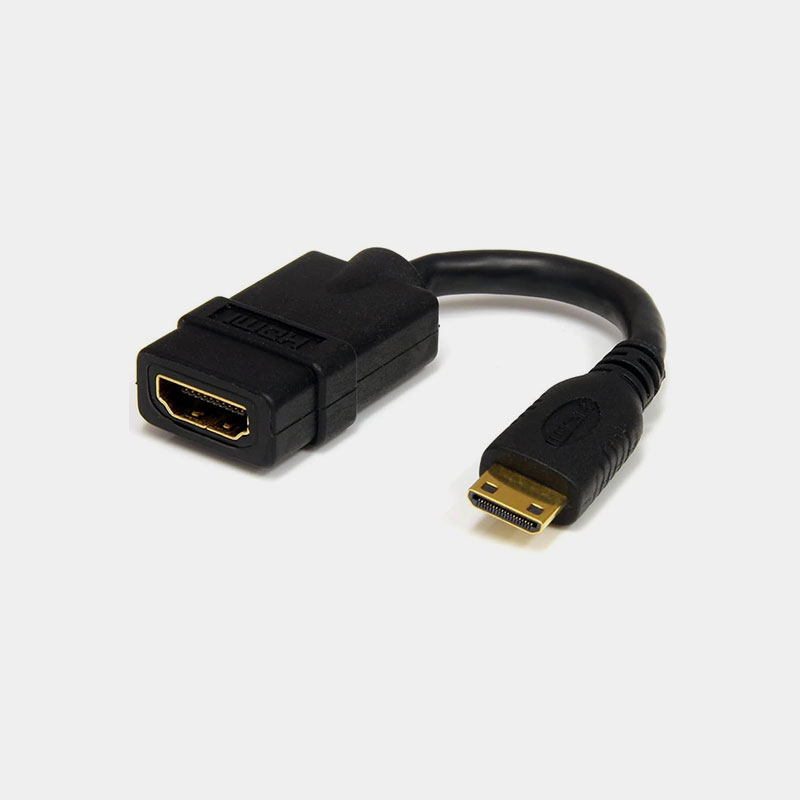 Este conector compacto es la solución ideal para enlazar cámaras, tabletas, videocámaras u otros equipos con puerto Mini HDMI (Tipo C) a un cable HDMI estándar.