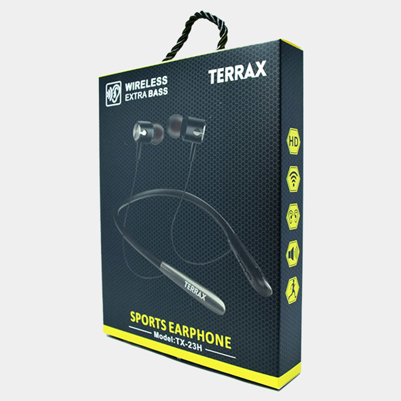 Auricular Headset TERRAX Sport Extra Bass TX-23H, ideal para deportistas, gracias a su diadema colgante para cuello, permitiendo una mejor sensación de uso y con conectividad Bluetooth. Audio Hi-Fi y con batería recargable de lithium-on, alcance de hasta 10 metros. Batería de 135mAh y con duración de hasta 90 horas en modo Standby.