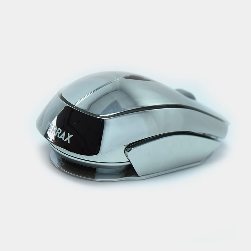 Mouse de Aluminio TERRAX Silencioso TX-M221 Inalámbrico, ideal para dar un toque diferente a tu espacio de trabajo, retroiluminado RGB LED 7 colores.